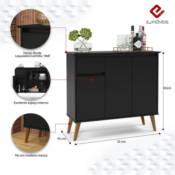 Aparador Veneza, Côr Preto, da EJ Móveis