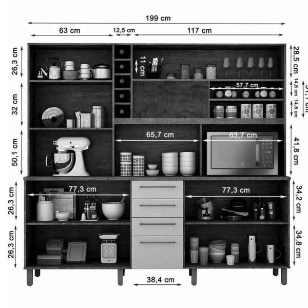 – Prateleiras: 05 MDP/MDF 15 mm;
