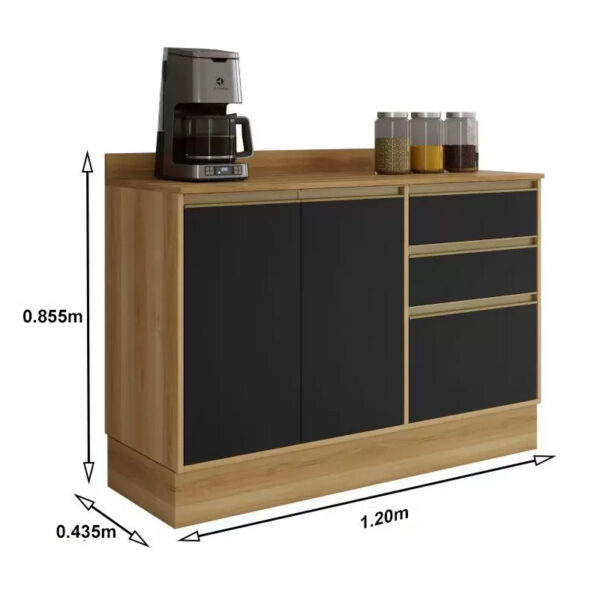 Balcão Barcelona 1.20m 3 Portas 2 Gavetas Carvalho/Grafite Sallêto