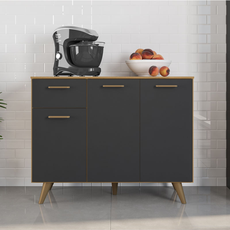 Balcão Cozinha Olinda Larg. 1.05m Freijó/Grafite Poliman