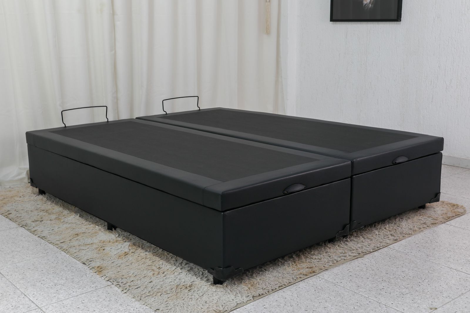 Base Box Baú Queen Bipartido Eli 158x198x42 Korino Preto Blindado – Nature