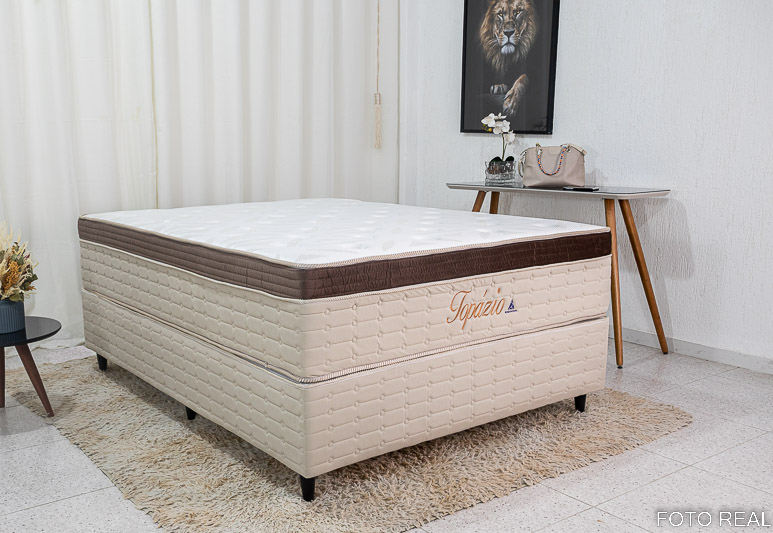 Base Box + Colchão Casal Topázio Molas Ensacadas 138x188x74 Rondomóveis