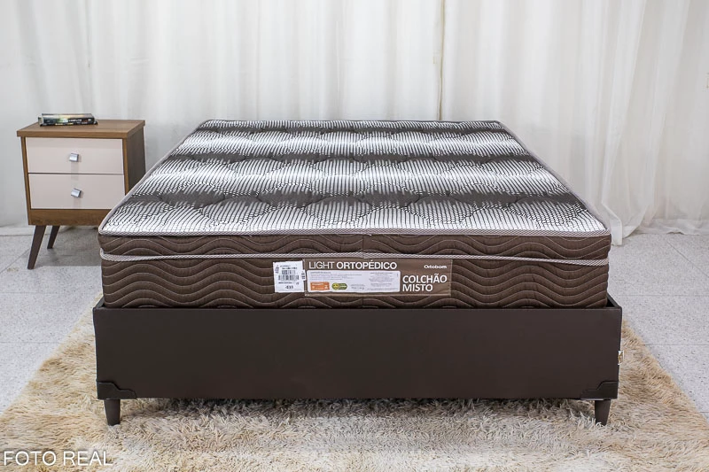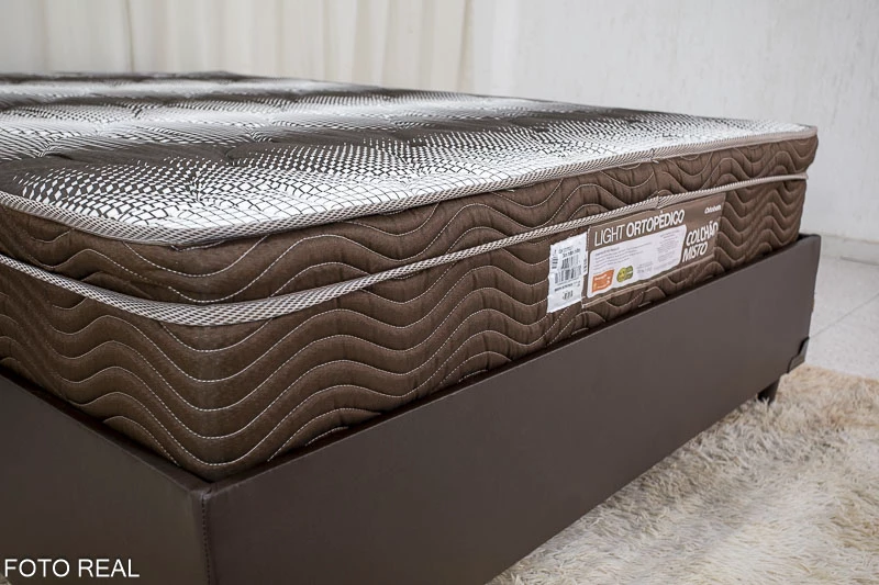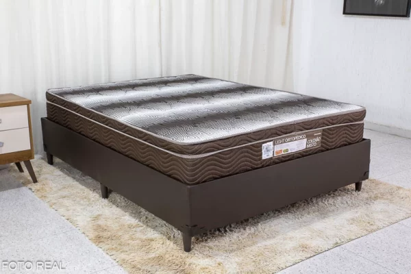 Box Casal Zeus Korino Café SE + Colchão Casal Ortopédico Light 138x188x60 Ortobom