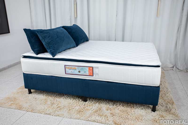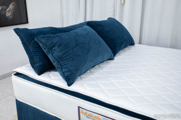 Box+Colchão Casal Molas Ensacadas Softslim Petróleo 138×188 Nosso Sonho Almofadas Grátis