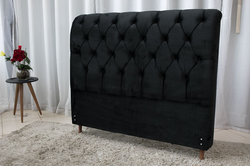 Cabeceira Casal Lavínia Veludo Preto – Largura 1.40m