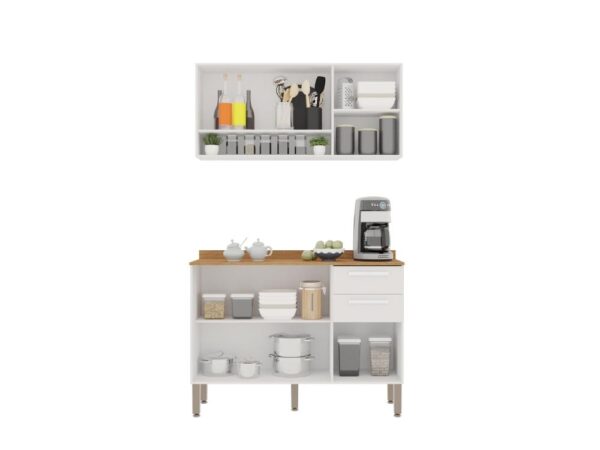 Combo Armário de Cozinha Aéreo 3 portas + Balcão 1.20 New Valência – Branco