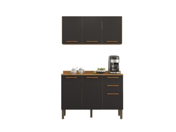 Combo Armário de Cozinha Aéreo 3 portas + Balcão 1.20 New Valência – Cinamomo/Grafite