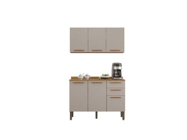 Combo Armário de Cozinha Aéreo 3 portas + Balcão 1.20 New Valência – Cinamomo/Off White