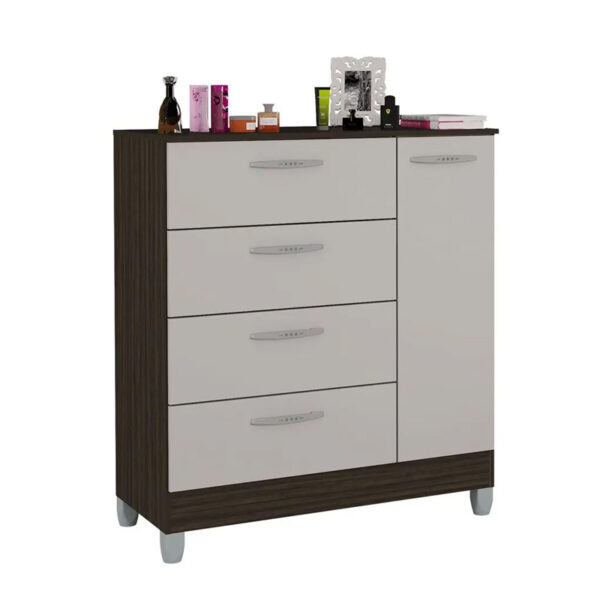Cômoda com 1 Porta 4 Gavetas Chocolate/Off White Poquema