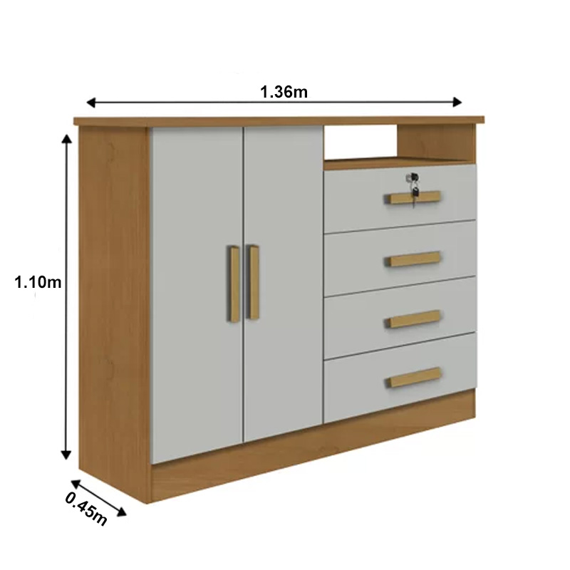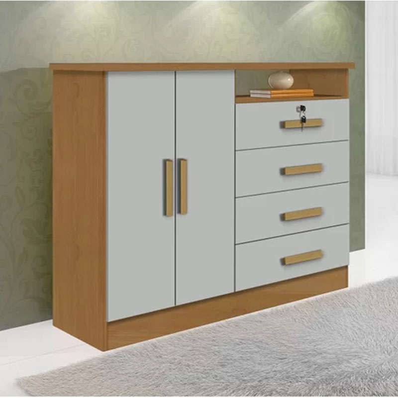 Cômoda Sapateira 4 Gavetas New Athos Cinamomo/Off D’Dorro