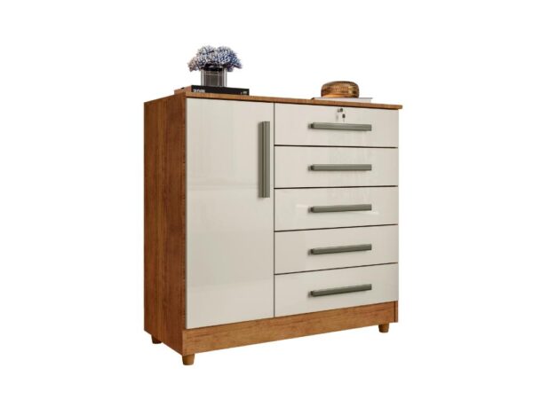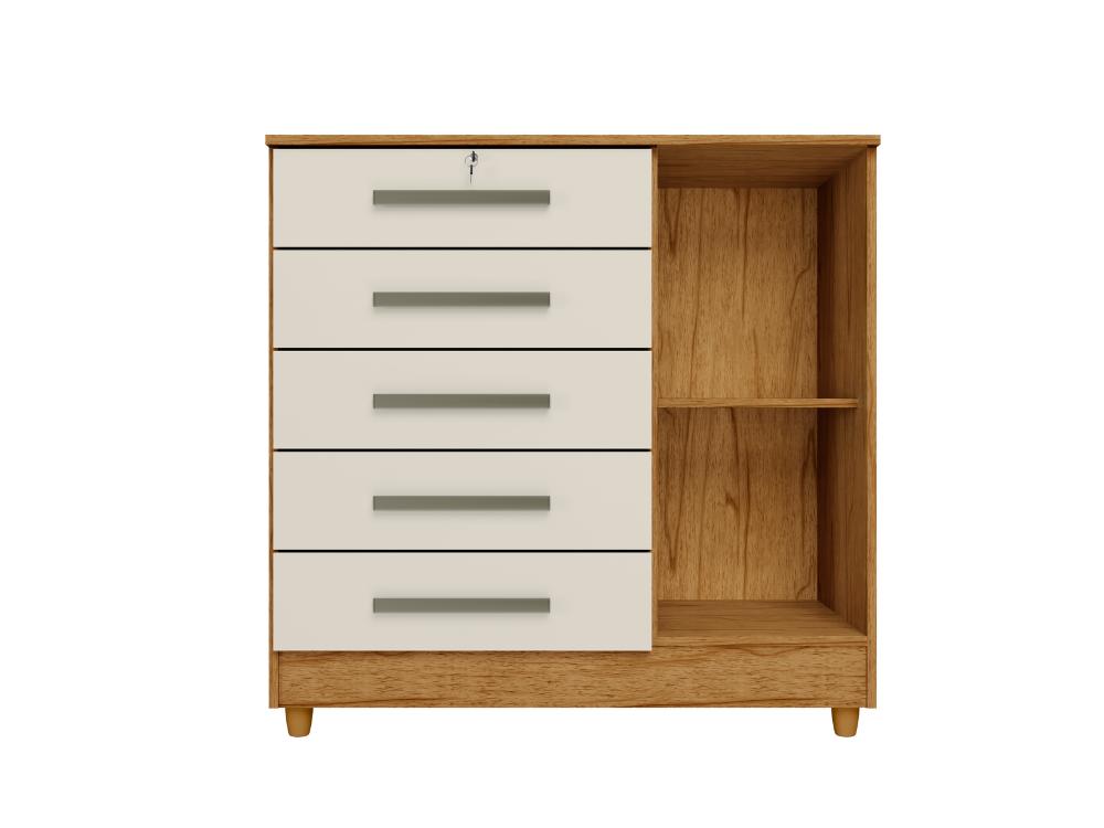 Cômoda Vitória 5 gavetas 1 porta – Cedro/Areia