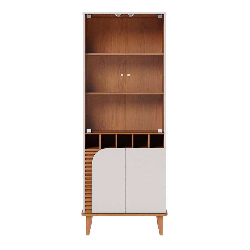 Cristaleira Jurerê Com Detalhe Ripado Larg. 0.70m Off White/Freijo Colibri