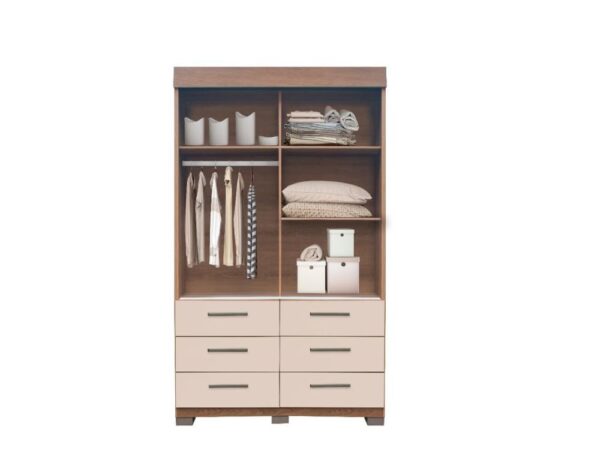 Guarda-Roupa Buzios 2 portas de correr com espelho 6 gavetas – Mel/Areia
