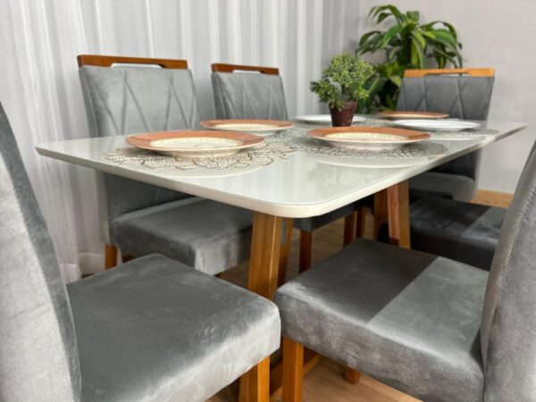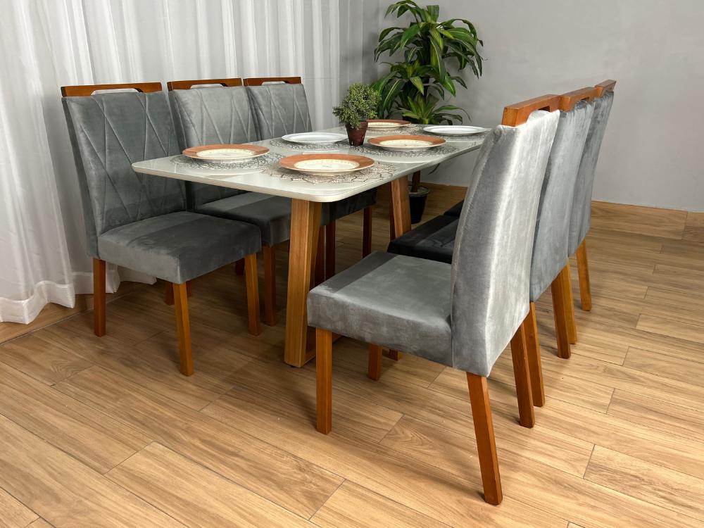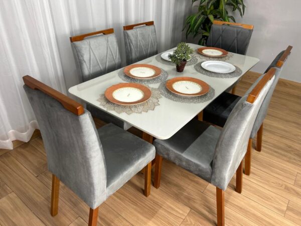 Mesa de Jantar Bali 1.60×0.80 Com 6 Cadeiras Isa – Cinamomo/Off White/Cinza
