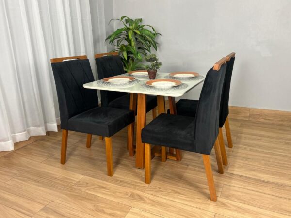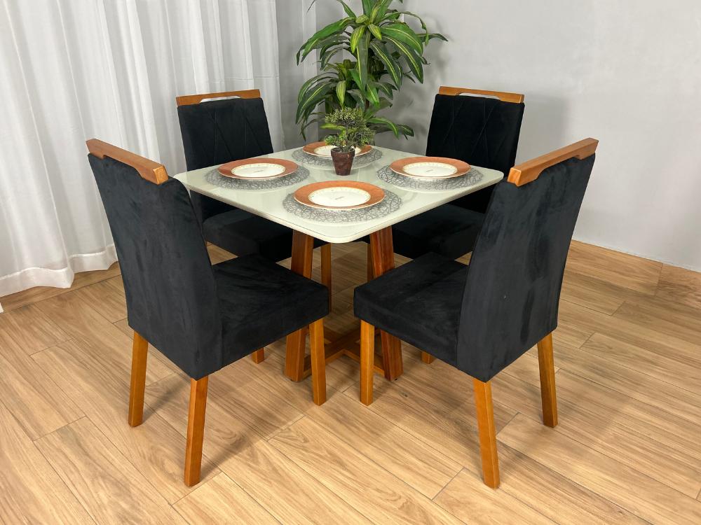 Mesa de Jantar Bali 0.90×0.90 Com 4 Cadeiras Isa – Minas Plac/Ouro Decor