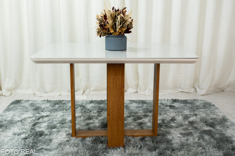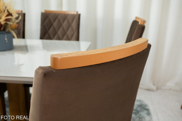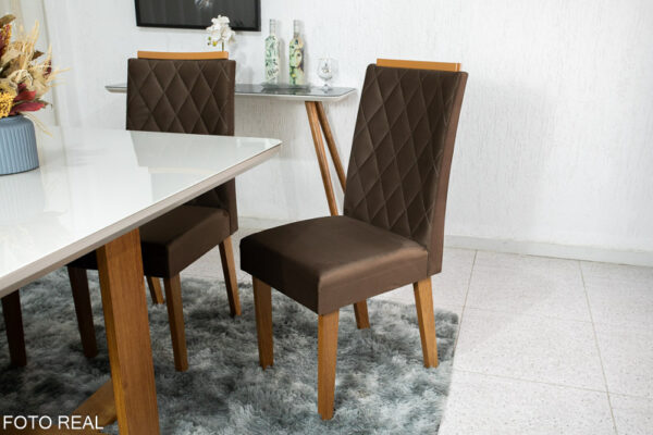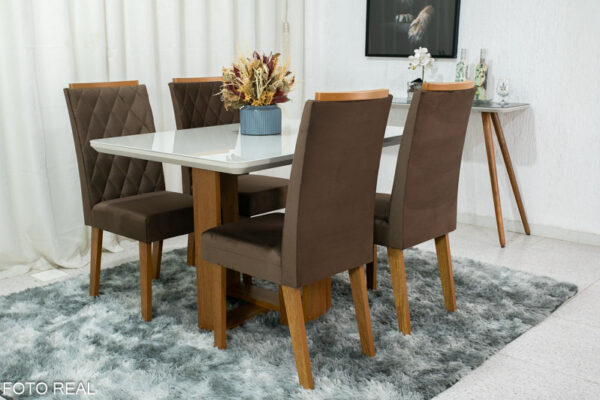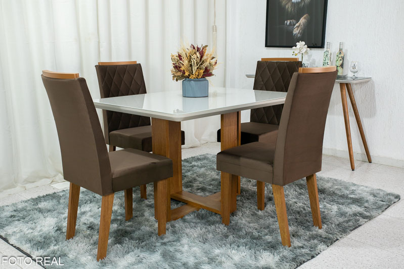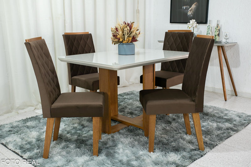 Mesa de Jantar Elenor Tampo Vidro Off c/4 Cadeiras Iza Mel Veludo Bombom – VIERO