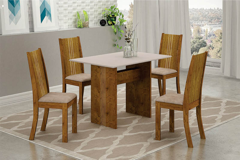 Mesa de Jantar Florença Tampo MDF Off 120X80 com 4 Cadeiras Vitória