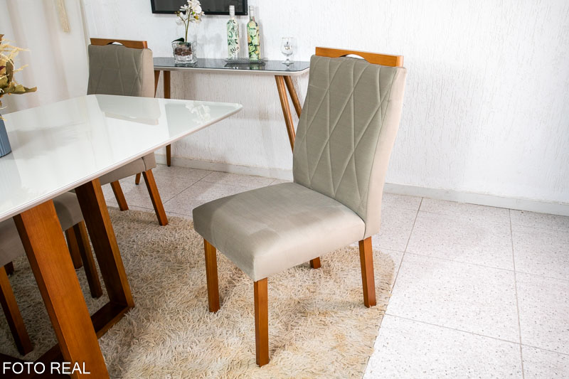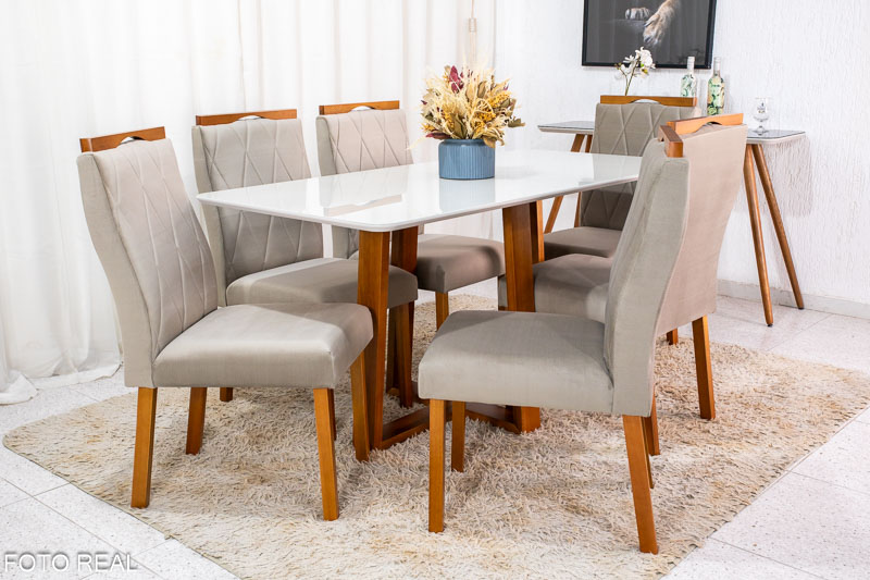 Mesa de Jantar Pedro Mel Tampo Off 160×80 6 Cadeiras Lisboa Assento Veludo Bege 506 Art Assento – Madeira Maciça