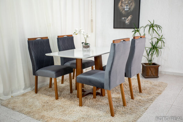 Mesa de Jantar Pedro Mel Tampo Vidro Off 120×80 4 Cadeiras Lisboa Veludo Cinza 507 Art Assento – Madeira Maciça