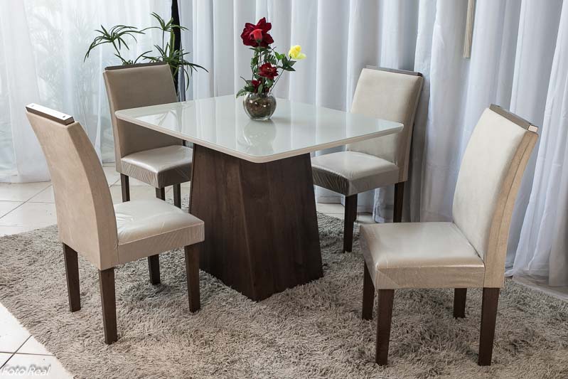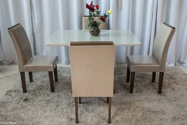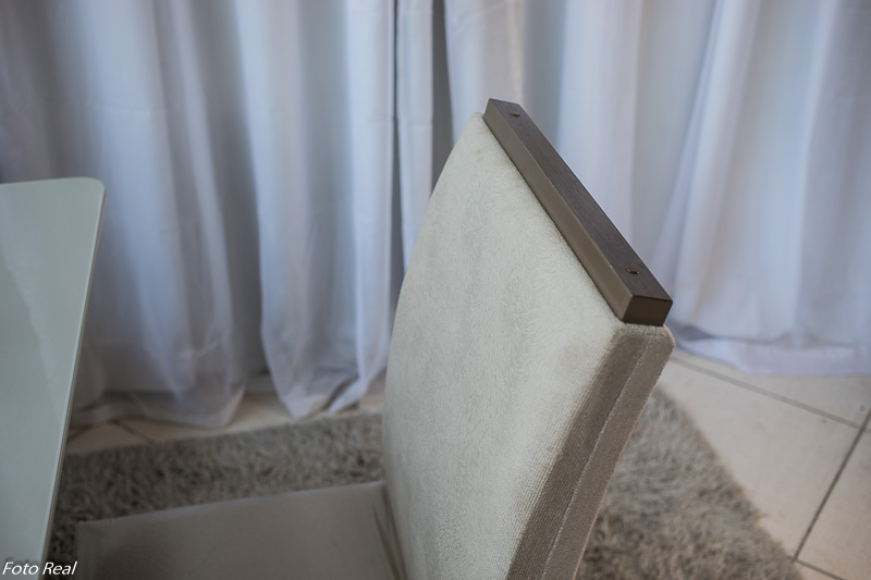 - Cadeiras: Tecido sued, estrutura: 100% MDF