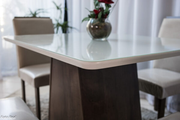 - Tampo: 100% MDF e vidro temperado arredondado na cor off white