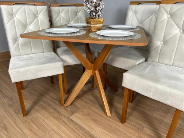 Mesa de Jantar Simpatia 0,90×0,90 Quadrada Com 4 cadeiras Jasmim – Cinamomo/Bege