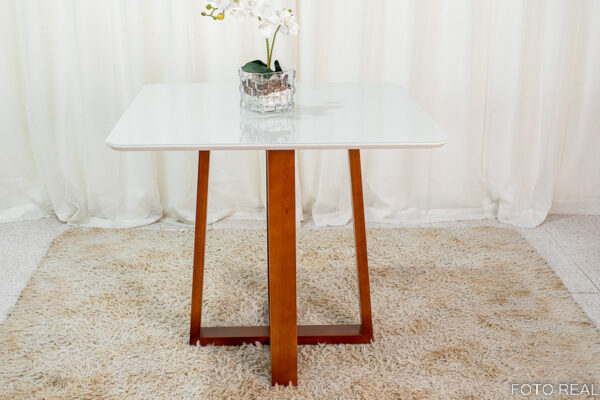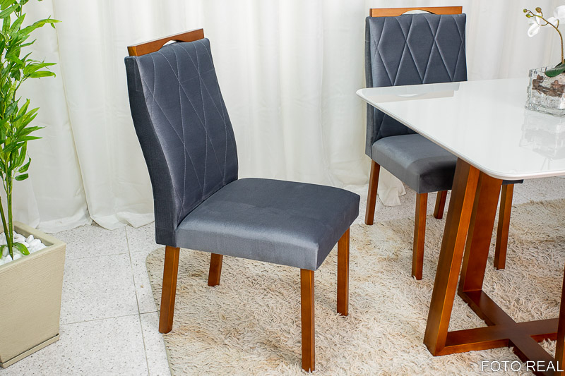 Mesa Pedro Mel Tampo Vidro Off 90×90 4 Cadeiras Lisboa Veludo Cinza 507 Art Assento – Madeira Maciça