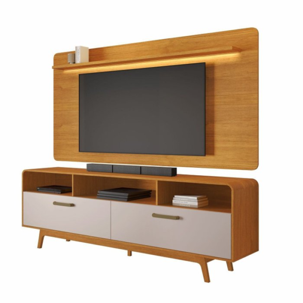 Painel até 70″ Cristal Larg. 2.00m Cinamono + Rack Cristal Cinamono/Off White – JCM MOVELARIA