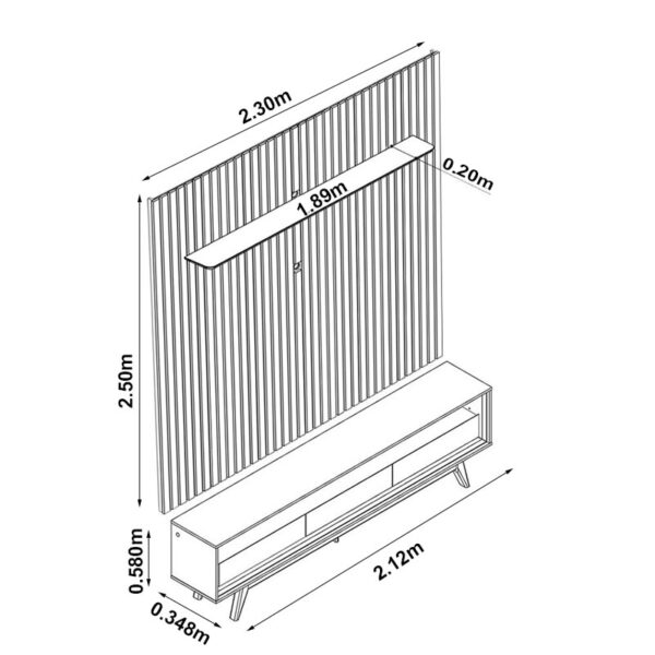 Painel Nobre Larg. 2.30m + Rack Requinte Larg. 2.12m C/LED Naturale/Off Gelius
