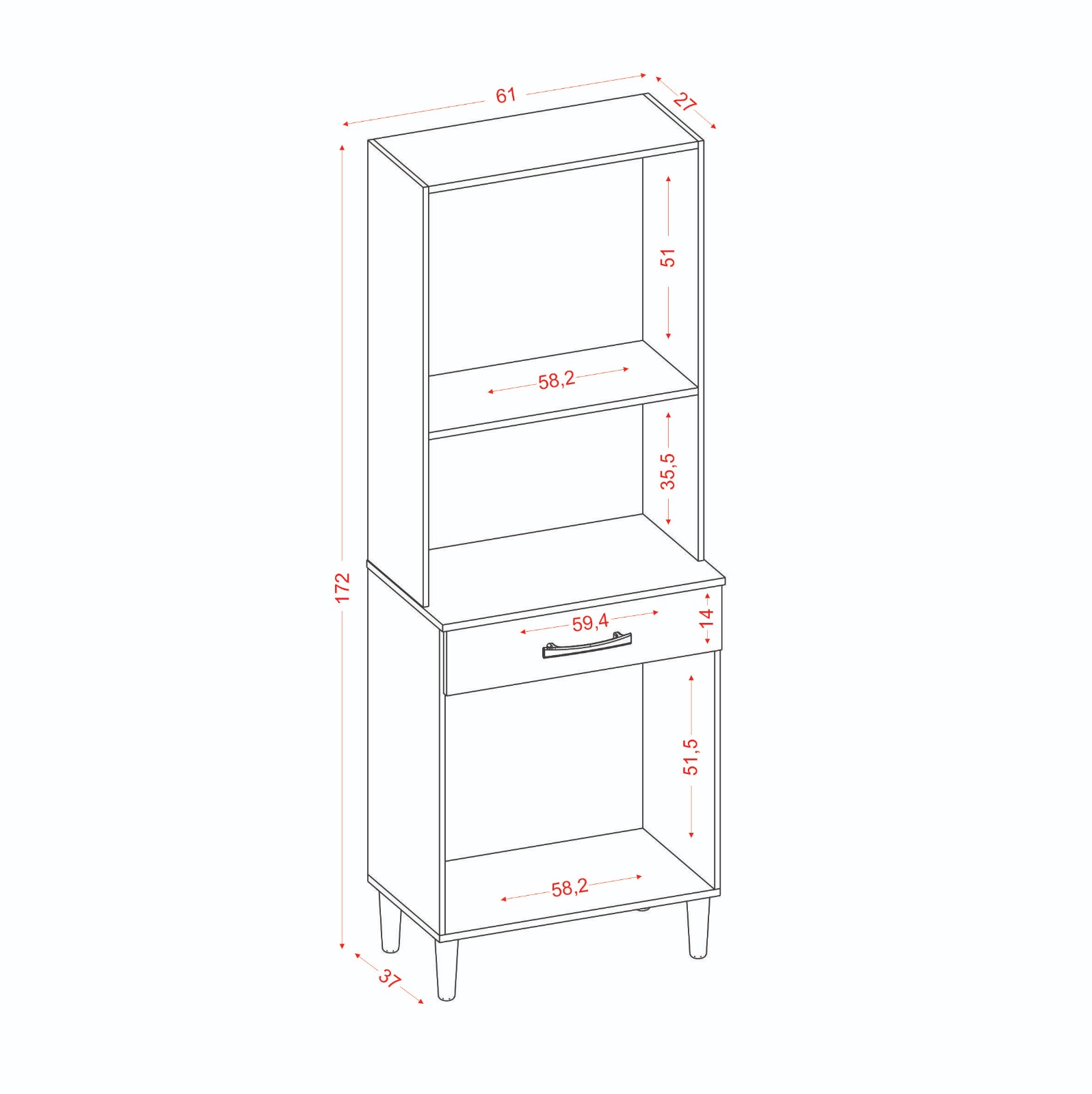 – Uma gaveta com corrediças metálicas