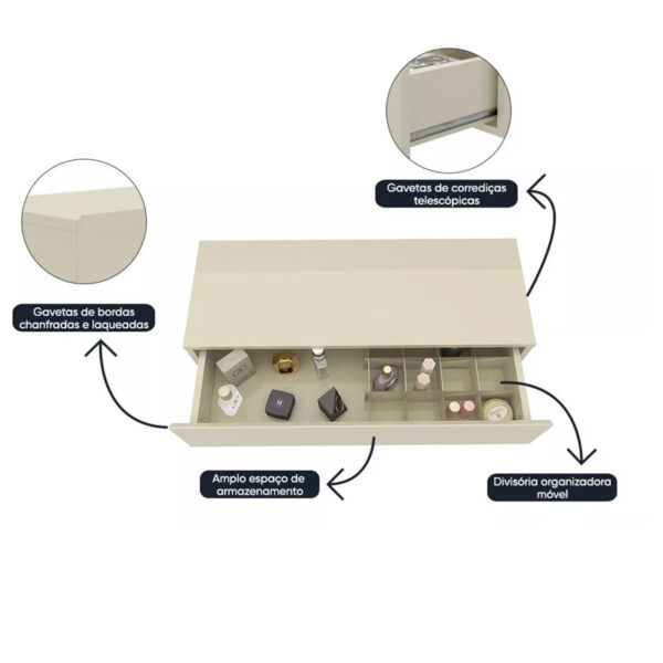 – Nicho com divisórias móveis, bordas chamfradas e laqueadas;