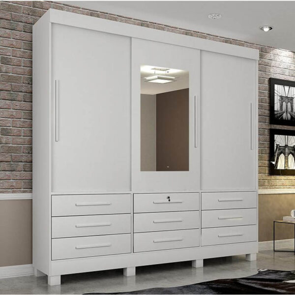 Roupeiro 3 Portas com Espelho Arezzo Branco Sallêto
