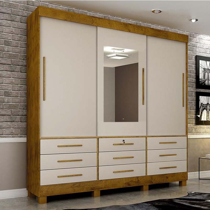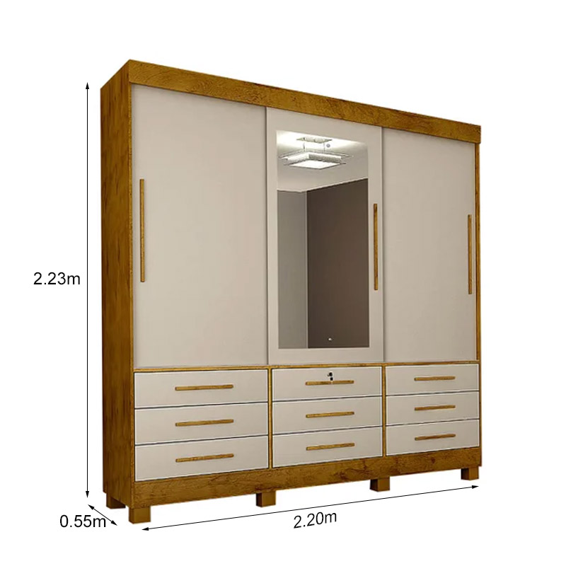 Roupeiro 3 Portas com Espelho Arezzo Cedro/Off White Sallêto