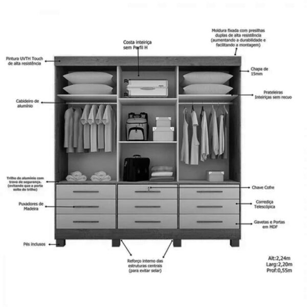 • 3 Portas c/ trilho em alumínio;