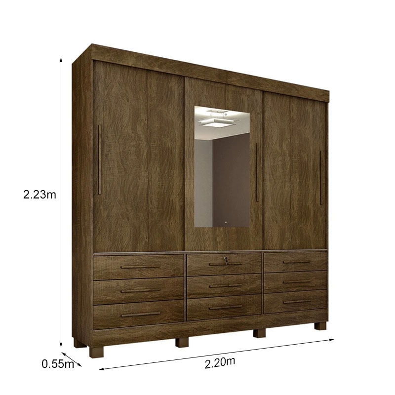 Roupeiro 3 Portas com Espelho Arezzo Ipe/Demolição Sallêto