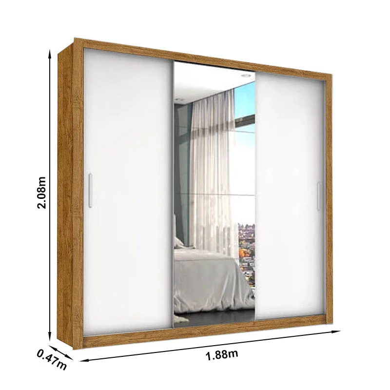 Roupeiro 3 Portas com Espelho Master Larg. 1.88m Cinamomo/Branco Carioca