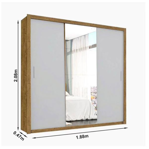 – Portas: 03 portas de correr com espelho
