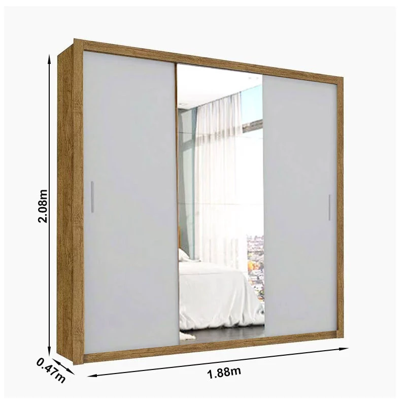 Roupeiro 3 Portas com Espelho Master Larg. 1.88m Cinamomo/Off Carioca