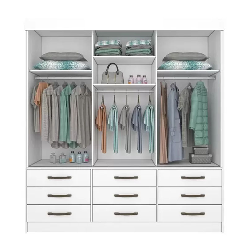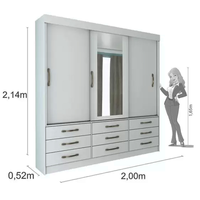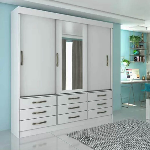 Roupeiro Chicago 3 Portas Larg. 1.99m c/Espelho Branco Tcil