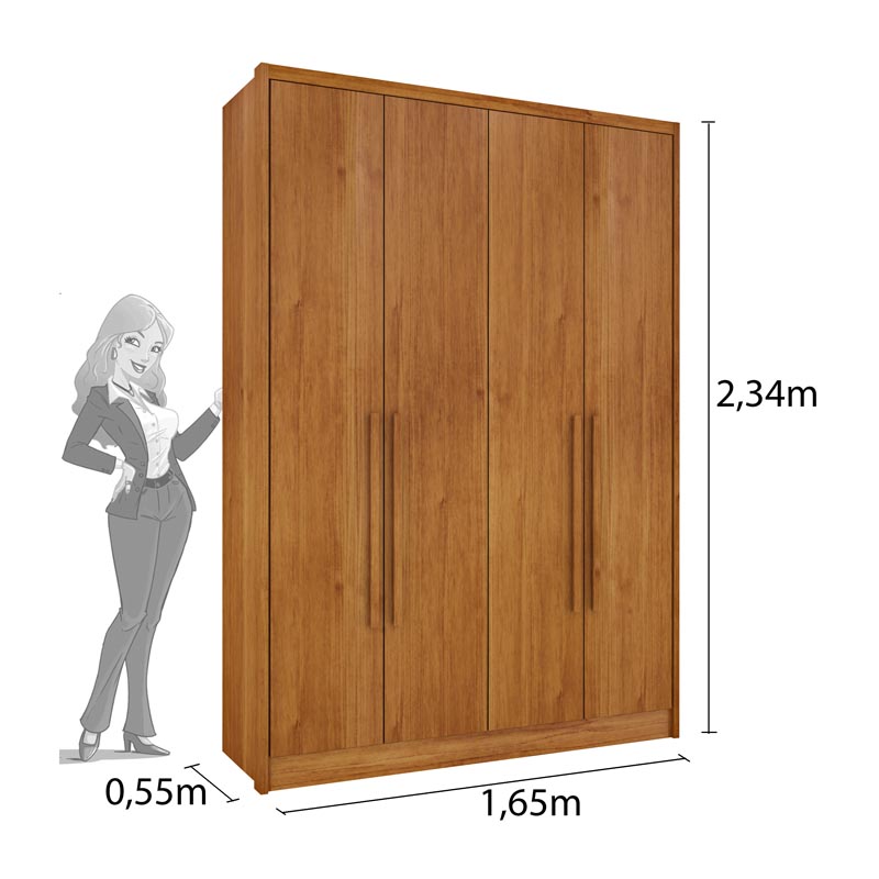 Roupeiro Dinamarca 4 Portas 2 gavetas Cinamomo Larg. 1.65m Tcil