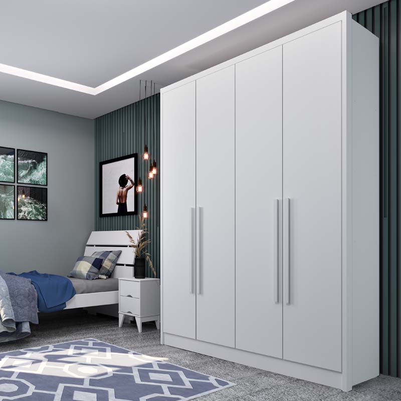 Roupeiro Dinamarca 4 Portas 2 gavetas Neve Larg. 1.65m Tcil
