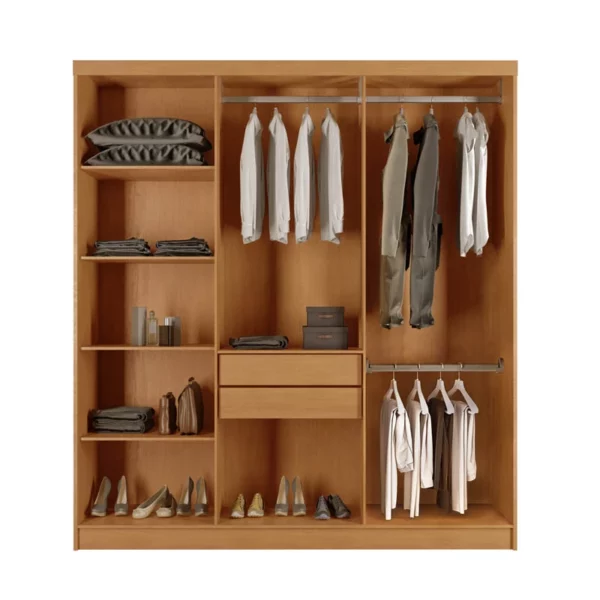 Roupeiro Grécia 6 Portas 100% MDF c/Pés Larg. 1.80m Nature/Off White Rufato