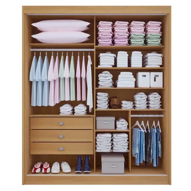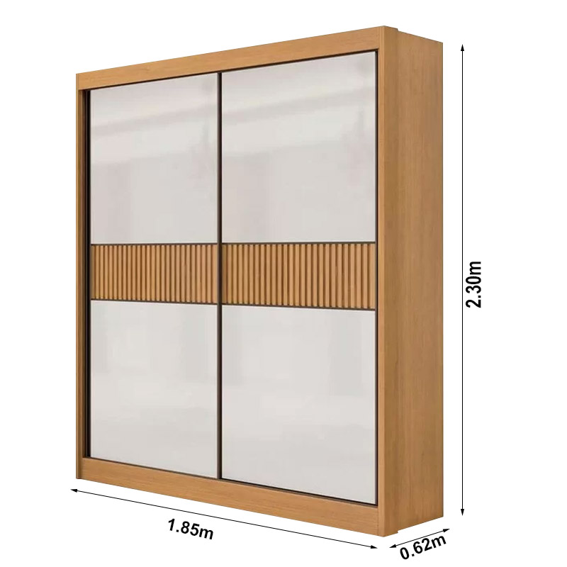 Roupeiro Santorini C/Detalhe Ripado 100% MDF 2 Portas Larg. 1.85m Cinamomo/Off DDoro