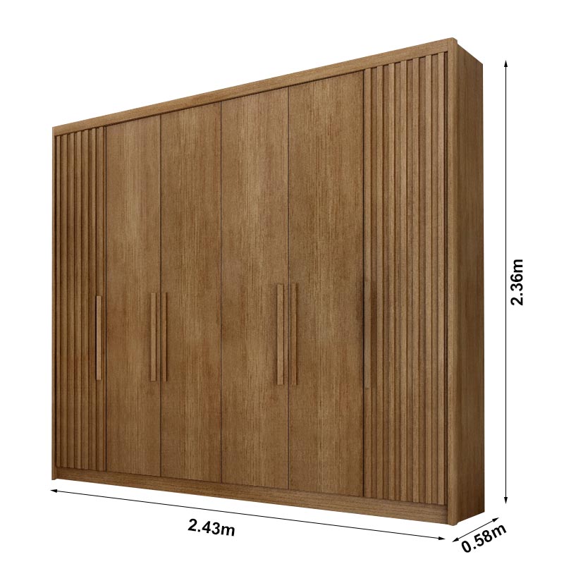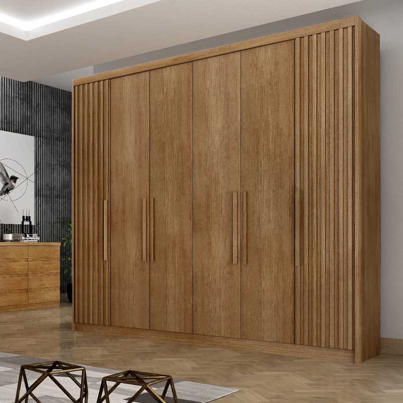 Roupeiro Santoro 6 Portas C/Detalhe Ripado 100% MDF Larg. 2.43m Cumaru -Novo Horizonte
