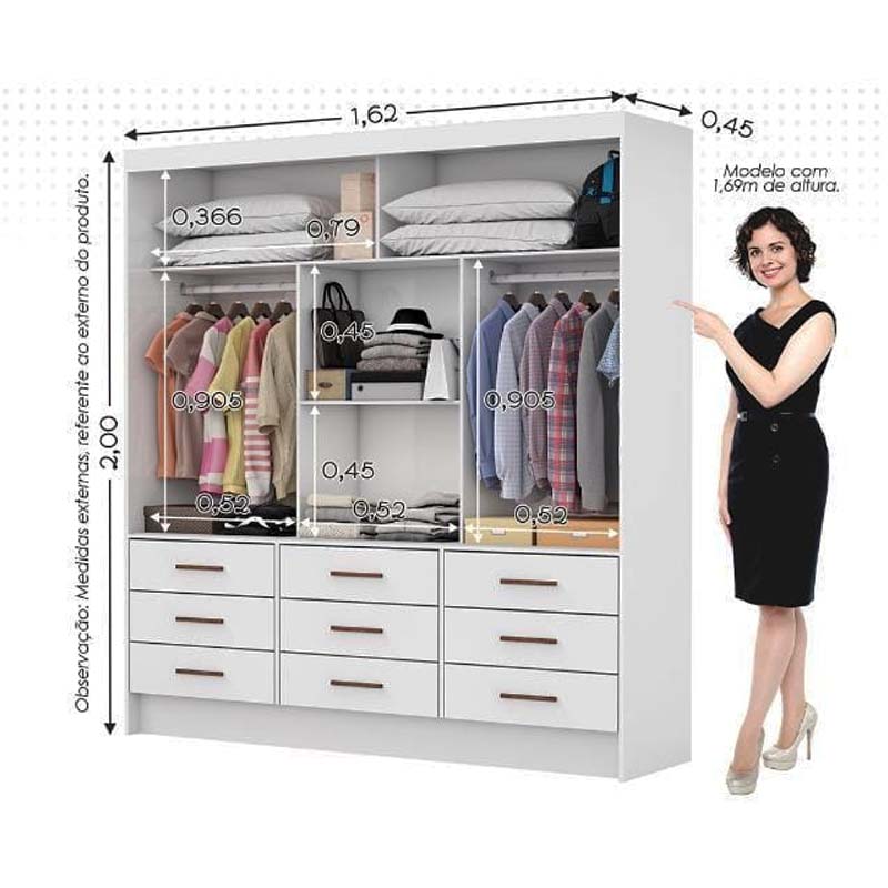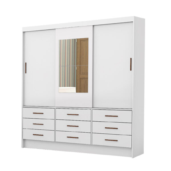 Roupeiro Sevilha 3 Portas 9 Gavetas C/Espelho Larg. 1.62m Branco Carioca