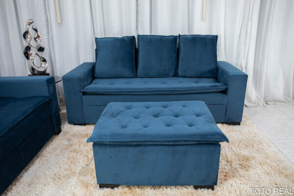 Sofá 3 e 2 lugares França com Puff Veludo Azul A16