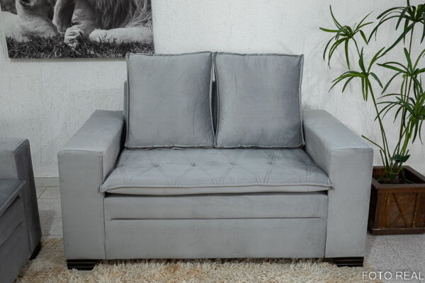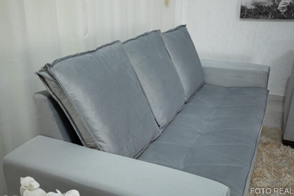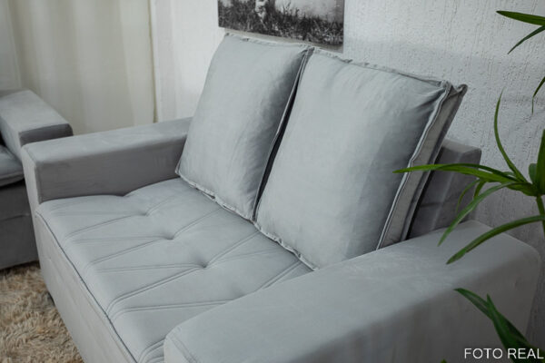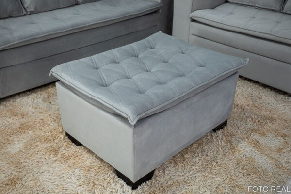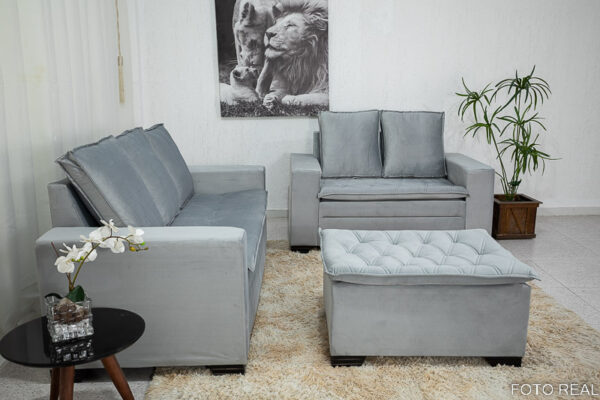 Sofá 3 e 2 lugares França com Puff Veludo Cinza A38