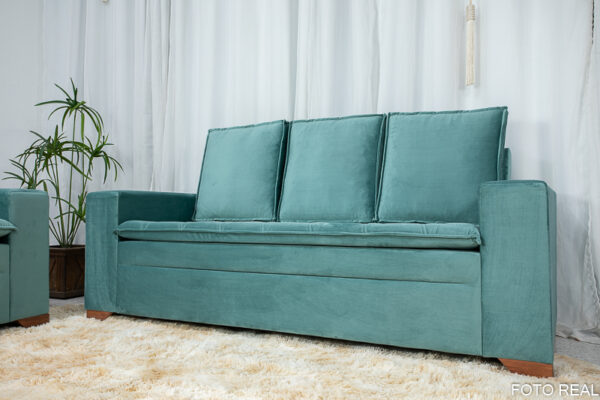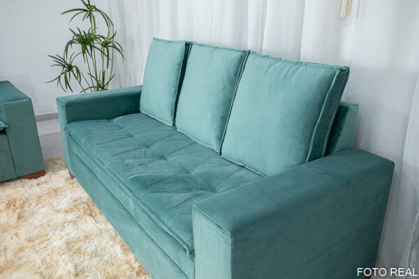 Sofá 3 e 2 lugares França com Puff Veludo Verde A40