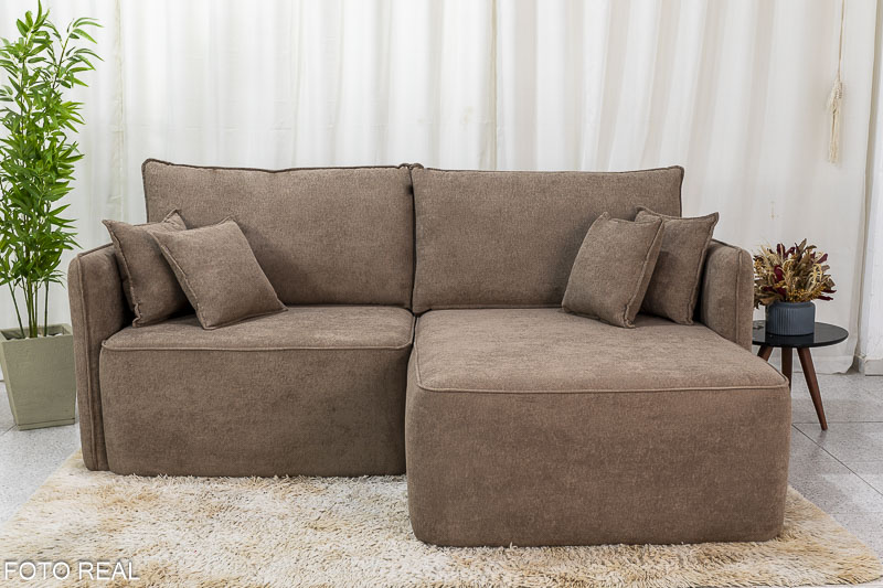 Sofá 3 Lug. Com Chaise Búzios Larg. 2.20m Marrom 623