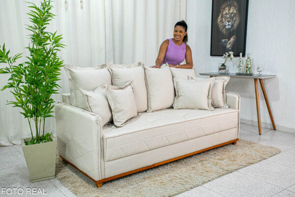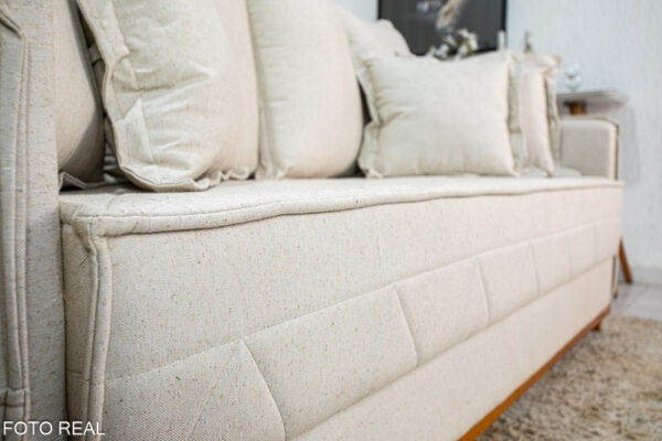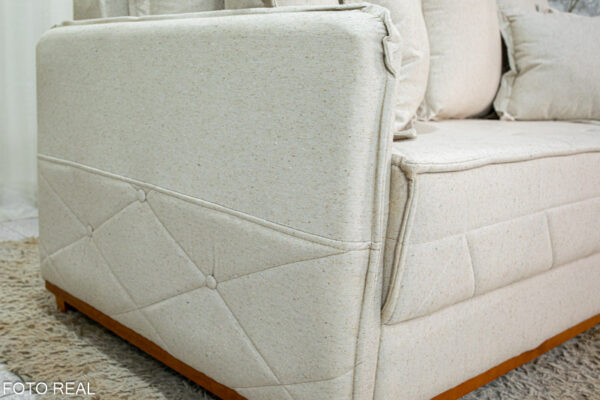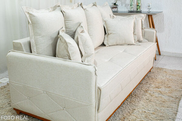 O linho possui uma textura naturalmente sofisticada, que confere ao sofá um aspecto elegante e atemporal.